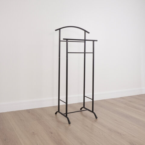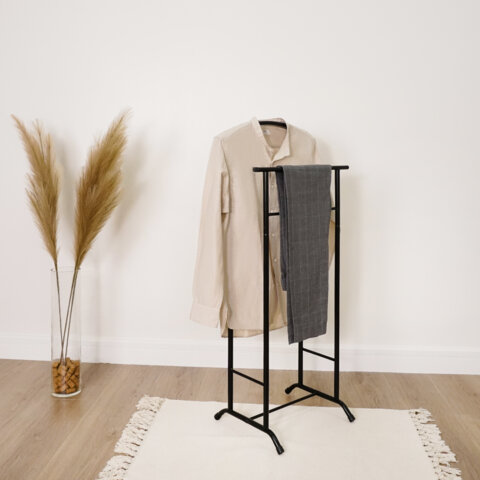 Вешалка напольная для одежды индивидуального пользования. Подходит для хранения одежды, ее сушки и отпаривания. Вместительная за счет плечиков и штанг. Компактность и функциональность позволяют ее эксплуатацию дома, в офисе, гостиницах и кафе.