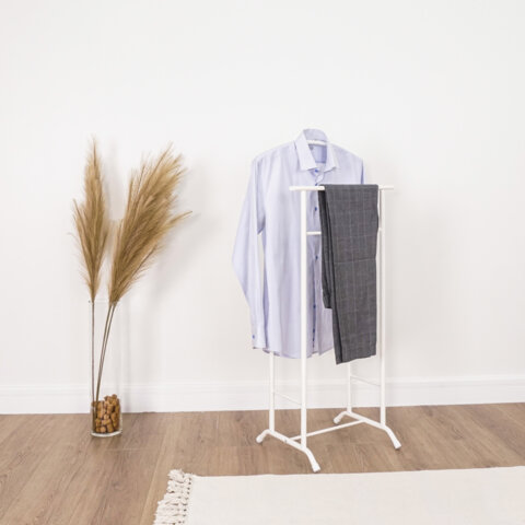 Вешалка напольная для одежды индивидуального пользования. Подходит для хранения одежды, ее сушки и отпаривания. Вместительная за счет плечиков и штанг. Компактность и функциональность позволяют ее эксплуатацию дома, в офисе, гостиницах и кафе. |