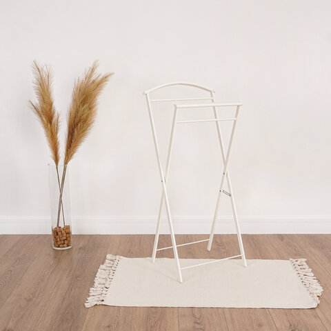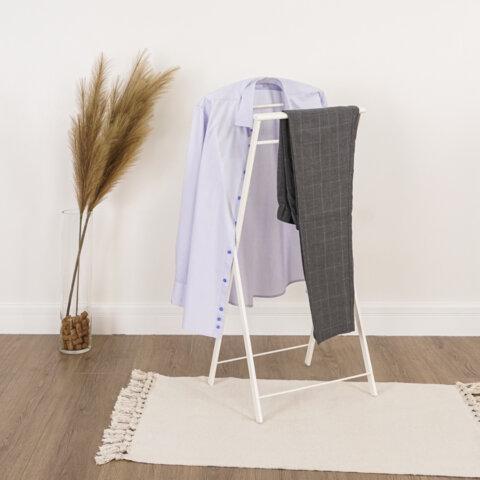 Вешалка для одежды индивидуального пользования. Подходит для хранения одежды, ее сушки и отпаривания. Вместительная за счет плечиков и штанг. Компактность, функциональность и складная конструкция позволяют ее эксплуатацию дома, в офисе, гостиницах и кафе.