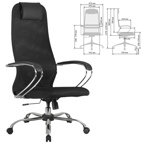 Кресло BRABIX PREMIUM "Ultimate EX-800" хром, плотная двойная сетка Х2, черное, 532911