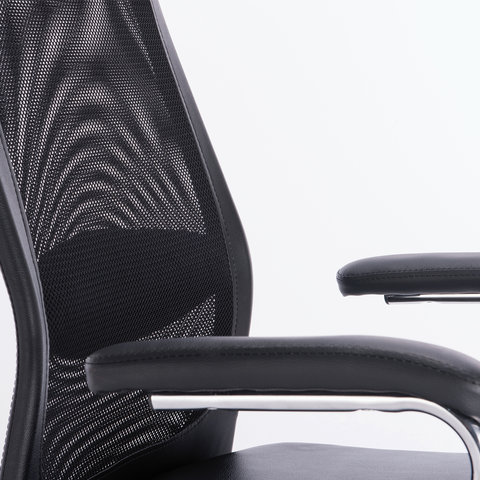 Кресло офисное BRABIX "Flight EX-540", хром, экокожа, сетка, черное, 531850