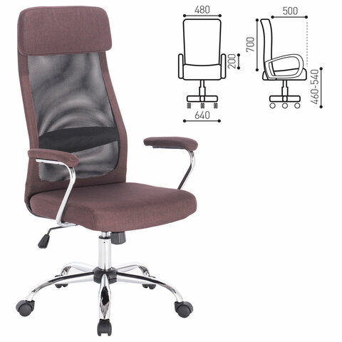 Кресло офисное BRABIX "Flight EX-540", хром, ткань, сетка, коричневое, 531849