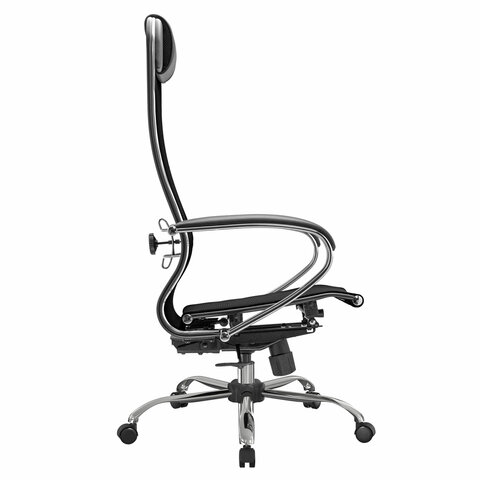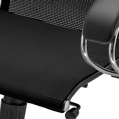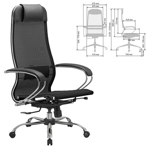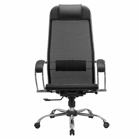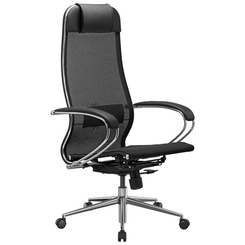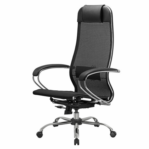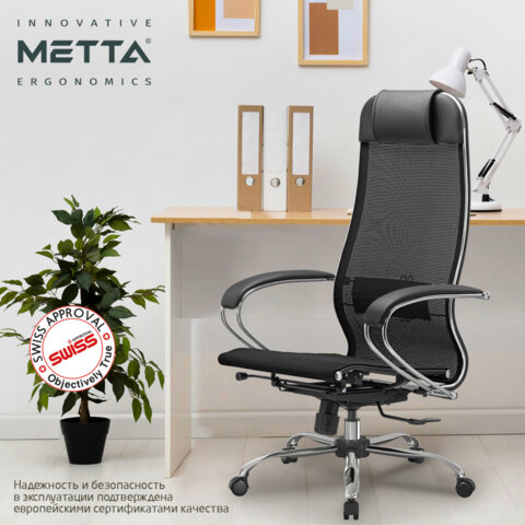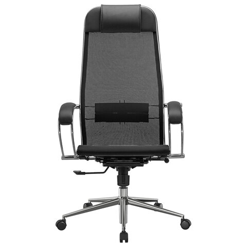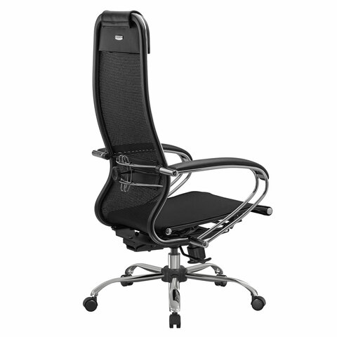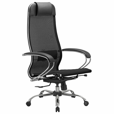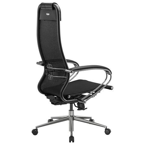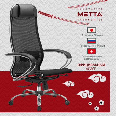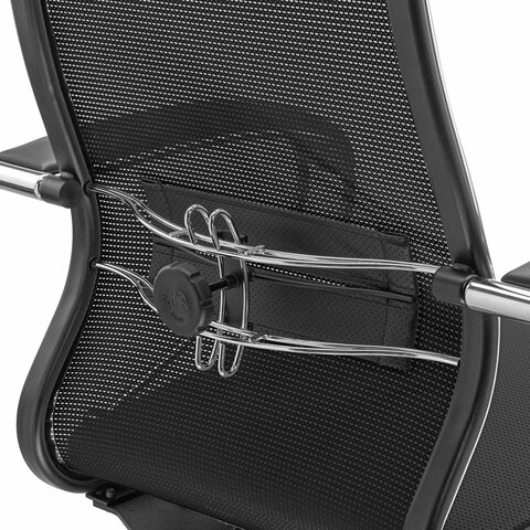Кресло офисное МЕТТА "К-12", хром, ткань-сетка, сиденье и спинка регулируемые, черное