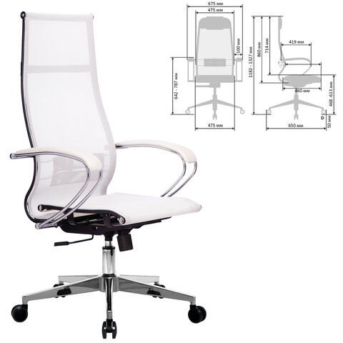 Кресло офисное МЕТТА "К-7" хром, прочная сетка, сиденье и спинка регулируемые, белое