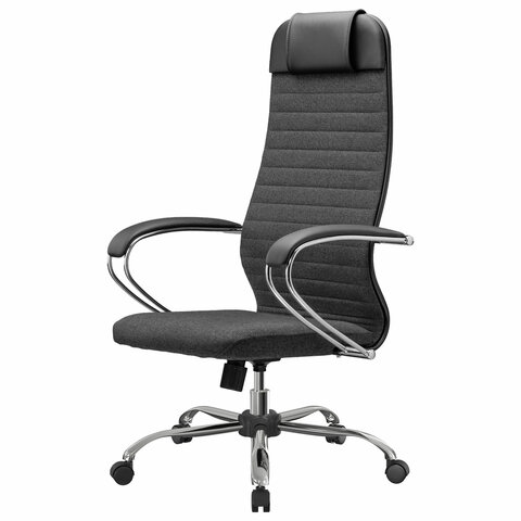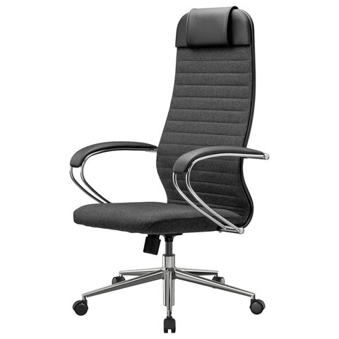 Кресло офисное МЕТТА "К-27" хром, ткань, сиденье и спинка мягкие, серое