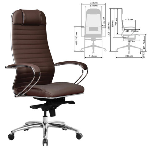 Кресло офисное МЕТТА "SAMURAI" KL-1, экокожа, темно-коричневое