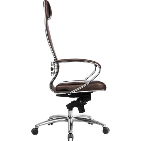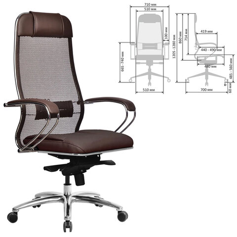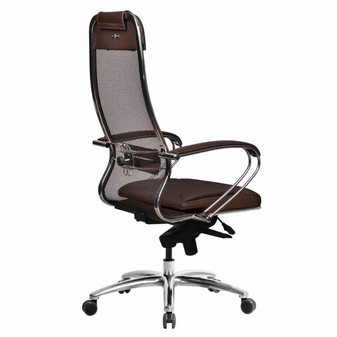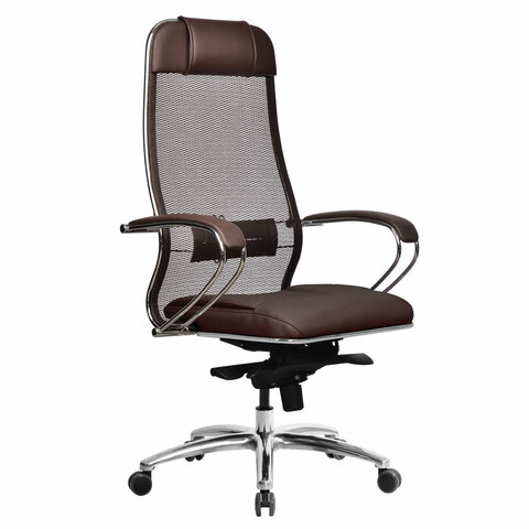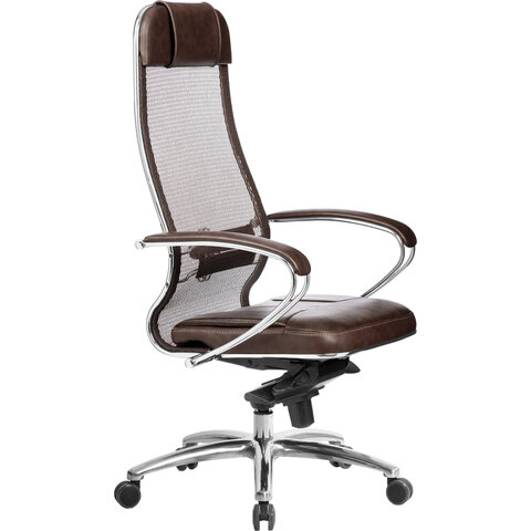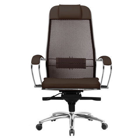 Кресло офисное МЕТТА "SAMURAI" SL-1, сверхпрочная ткань-сетка/экокожа, темно-коричневое