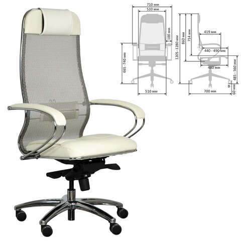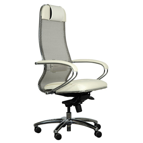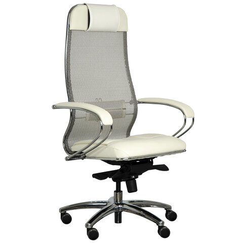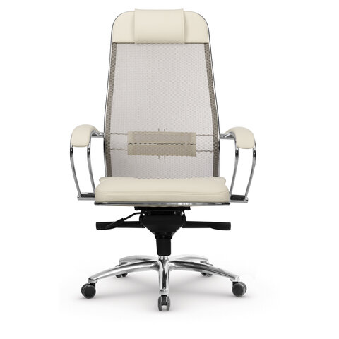Кресло офисное МЕТТА "SAMURAI" SL-1, сверхпрочная ткань-сетка/экокожа, бежевое