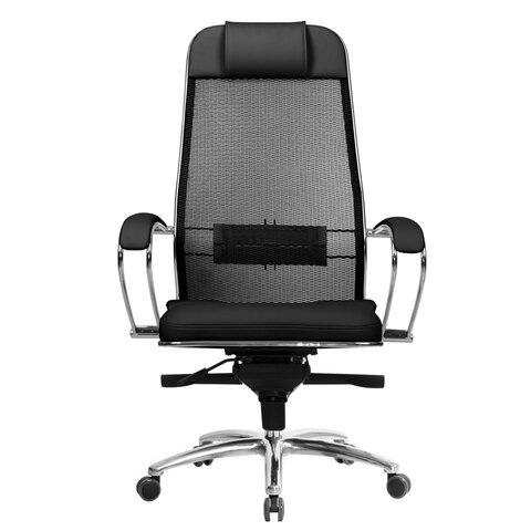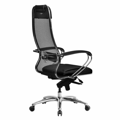 Кресло офисное МЕТТА "SAMURAI" SL-1, сверхпрочная ткань-сетка/экокожа, черное