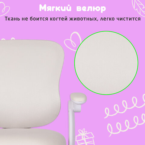 Кресло детское с подставкой для ног BRABIX "Sky MG-206", велюр, бежевое, 533156