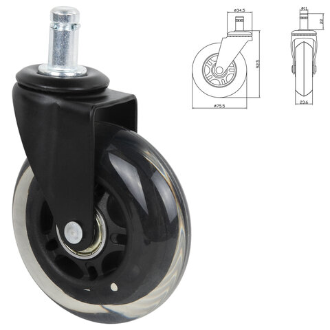 Комплект мягких бесшумных роликов BRABIX для компьютерных кресел.