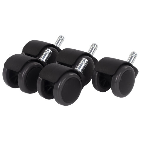 Комплект роликов для офисных кресел. Стандартный размер штока – 11х21 мм. Максимальная нагрузка – 45 кг на 1 колесо. Полиуретановое покрытие обеспечивает бесшумный ход и защищает пол от повреждений. Рекомендованы для ламината, паркета, плитки, линолеума. |