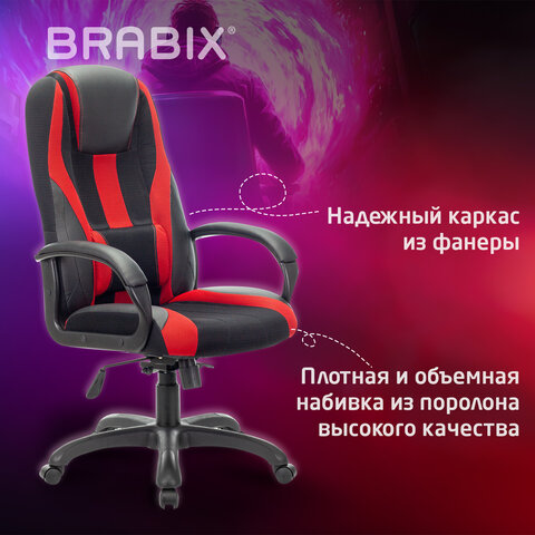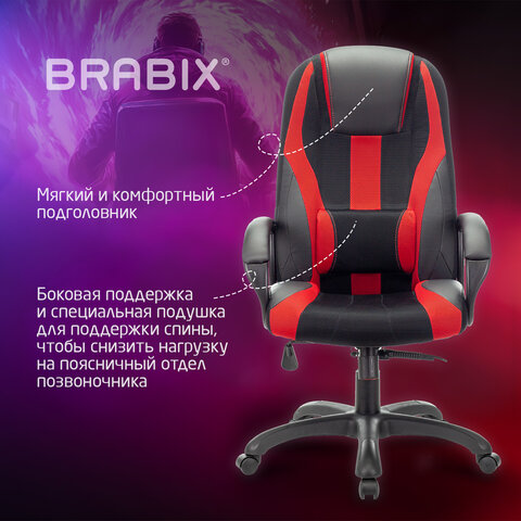 Кресло BRABIX "Rapid GM-102" специально разработано для профессиональных геймеров, проводящих много часов подряд за игрой, не меняя положения тела.