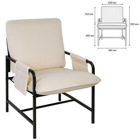 Кресло BRABIX "Gentle LC-300", ЛОФТ, пружинный блок, ткань велсофт (плюш), молочное, 533144