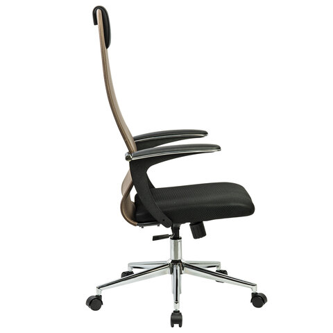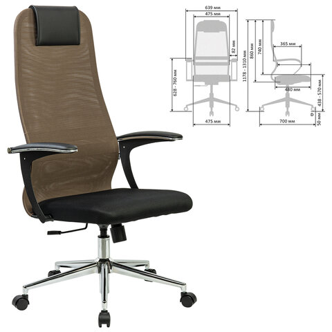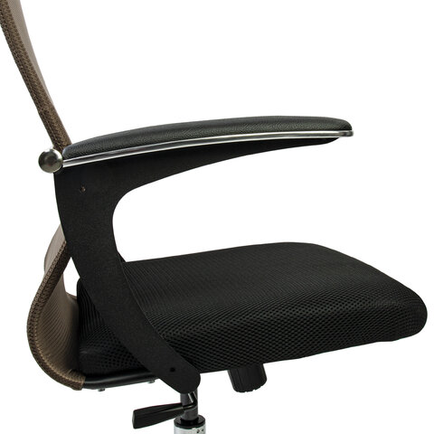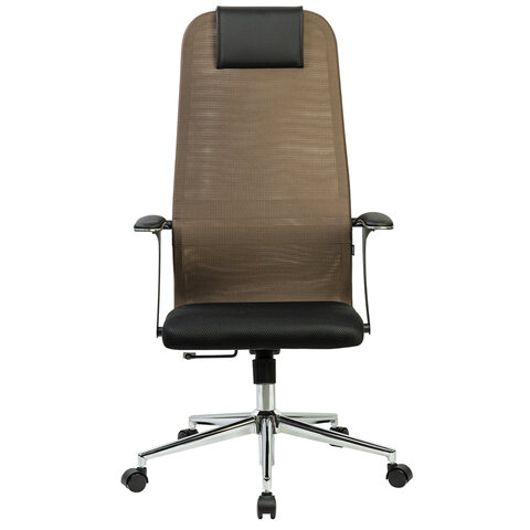 Кресло BRABIX PREMIUM "Ultimate EX-801" хром, плотная двойная сетка Х2, черное/коричневое, 532920