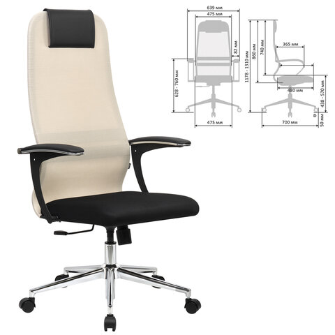 Кресло офисное BRABIX PREMIUM "Ultimate EX-801" хром, плотная двойная сетка Х2, черное/бежевое, 532919