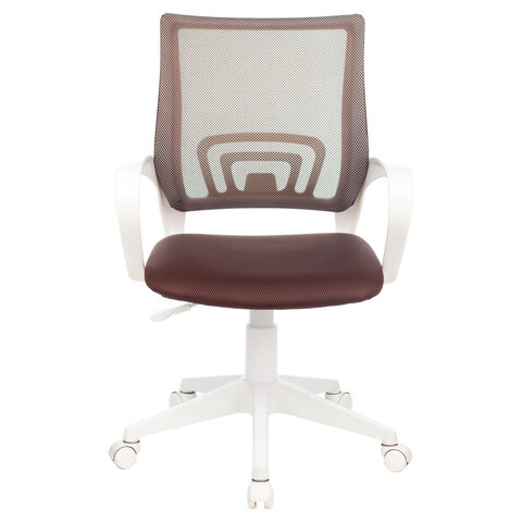 Кресло BRABIX "Fly MG-396W", с подлокотниками, пластик белый, сетка, коричневое, 532398, MG-396W_532398