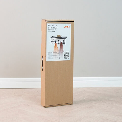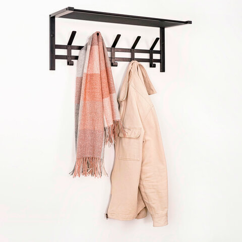Вешалка настенная с полкой "Торонто-21", 270х670х270 мм, 5 крючков, металл, черная, ВСПТ21 Ч