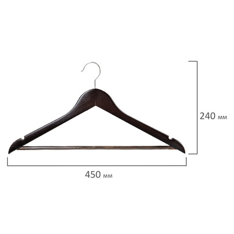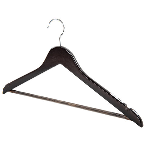 Вешалки-плечики BRABIX с перекладиной для одежды и антискользящими плечиками с рифленой силиконовой поверхностью, которая исключает сползание одежды. Выполнены из качественной древесины благородного темного окраса. Стильные и очень удобные. |