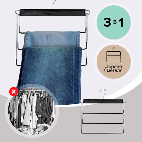 Данная вешалка BRABIX с ПВХ-покрытием идеальна для брюк и джинс. Имеет 3 уровня. Обеспечивает удобство и экономию пространства Вашего шкафа или гардеробной. Идеальна для небольших шкафов, фактически заменяет 3 вешалки, но при этом занимает меньший объем. |
