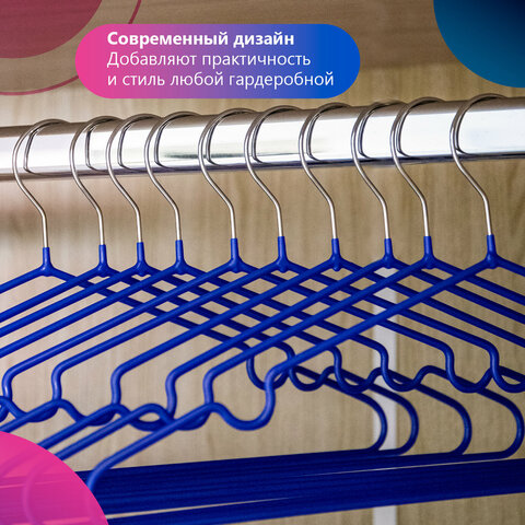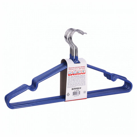 Набор из 10 прочных металлических вешалок BRABIX для одежды со специальным резиновым покрытием. Классическая форма тремпеля с перекладиной для брюк и выемкой для одежды с бретельками позволяет использовать вешалку практически для любой одежды. |
