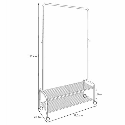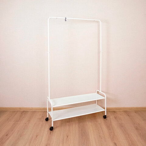 Вешалка для плечиков "Валенсия-32М", 1620х915х300 мм, 2 полки, передвижная, металл, белая, ВГВ32М Б