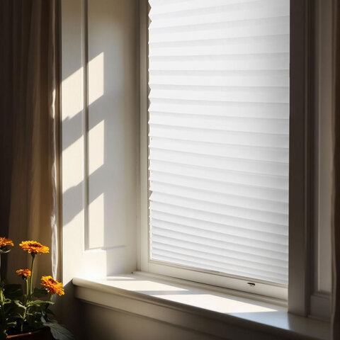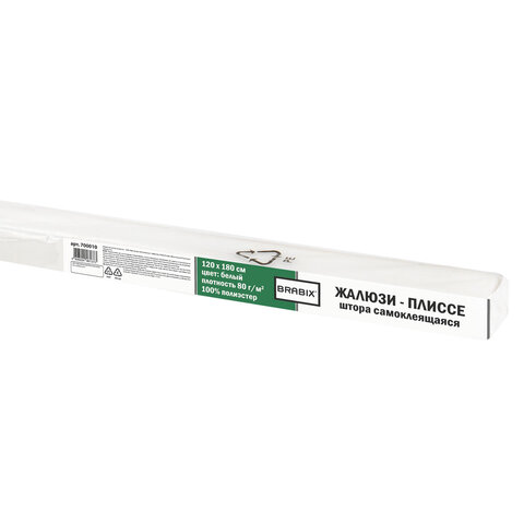 Жалюзи-плиссе, штора тканевая самоклеящаяся BRABIX, 120х180 см, СТАНДАРТ+, 80 г/м2, цвет белый, 1 шт., 700010
