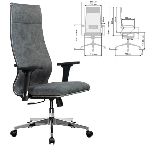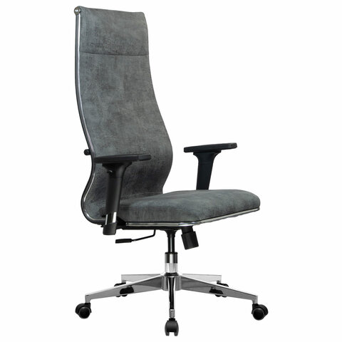 Кресло офисное МЕТТА "L1m 42/2D", хром, 2D-подлокотники, сиденье и спинка мягкие, велюр, темно-серое