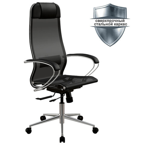 Кресло МЕТТА "ErgoLife" 10 B1-104K, хром, синхромеханизм, прочная сетка, черное