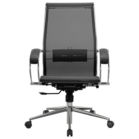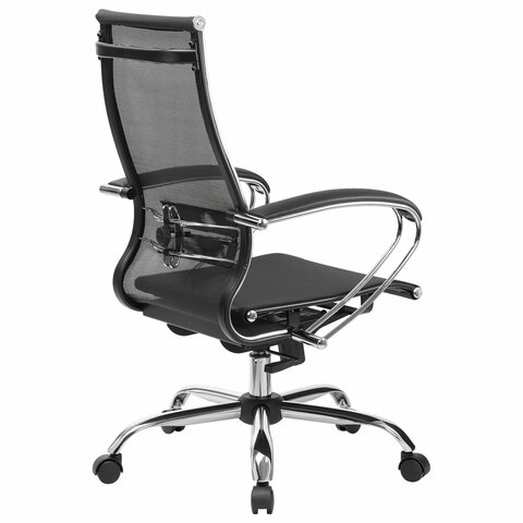Кресло офисное МЕТТА "К-9" хром, прочная сетка, сиденье и спинка регулируемые, черное