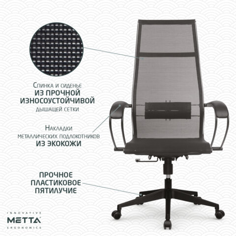 Кресло офисное МЕТТА "К-7" пластик, прочная сетка, сиденье и спинка регулируемые, черное