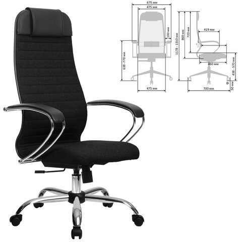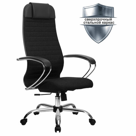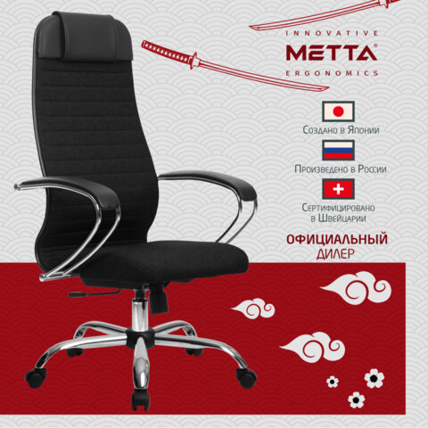 Кресло офисное МЕТТА "К-27" хром, ткань, сиденье и спинка мягкие, черное