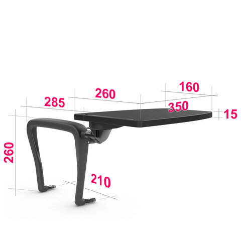 Столик для стульев "ИЗО" предназначен для оборудования учебных классов, конференц-залов, презентационных комнат. Легко монтируется на стул в отверстия поперечных труб, после использования складывается в вертикальное положение сбоку стула. |