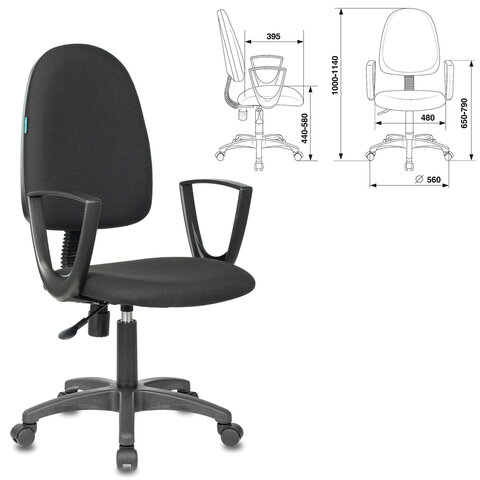 Кресло CH-1300N "Престиж+", с подлокотниками, ткань, черное, 1215475