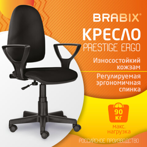 Кресло BRABIX "Prestige Ergo MG-311", регулируемая эргономичная спинка, кожзам, черное, 531877
