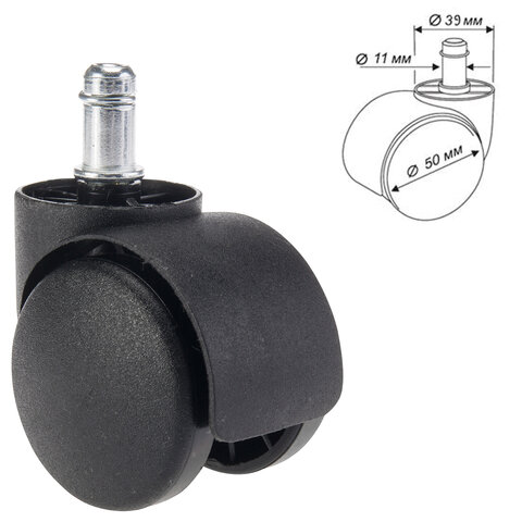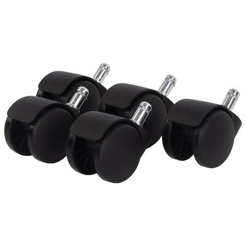Комплект роликов для офисных кресел. Стандартный размер штока 11х21 мм совместим с подавляющим большинством моделей кресел. Максимальная нагрузка – 45 кг на 1 колесо. Рекомендованы для следующих типов напольных покрытий: плитка, линолеум, ковролин. |