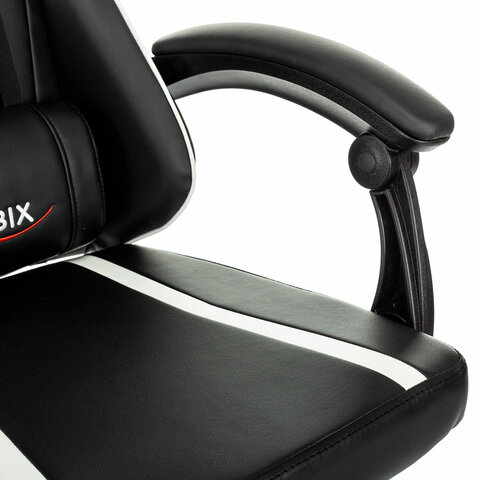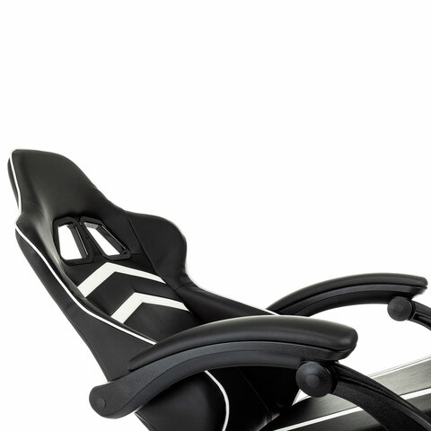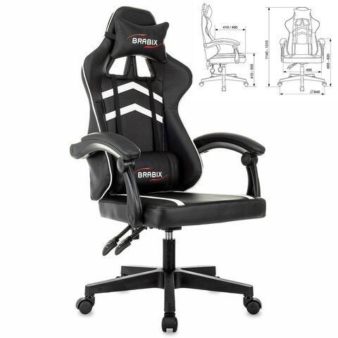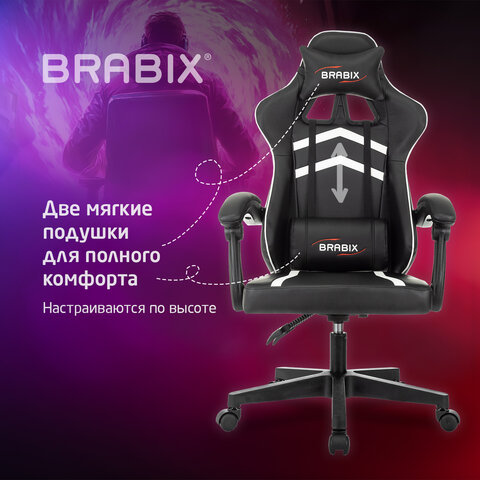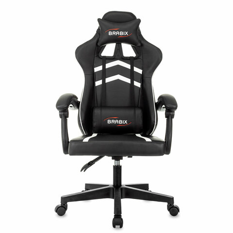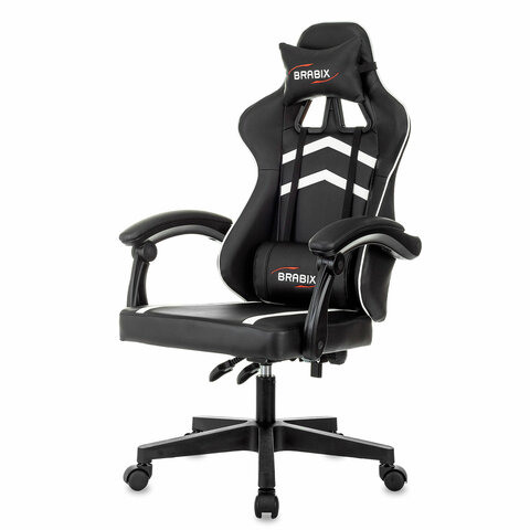 Кресло компьютерное BRABIX "Shooter GM-123", 2 подушки, экокожа, черное/белое, 533191