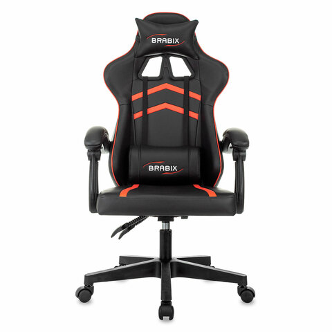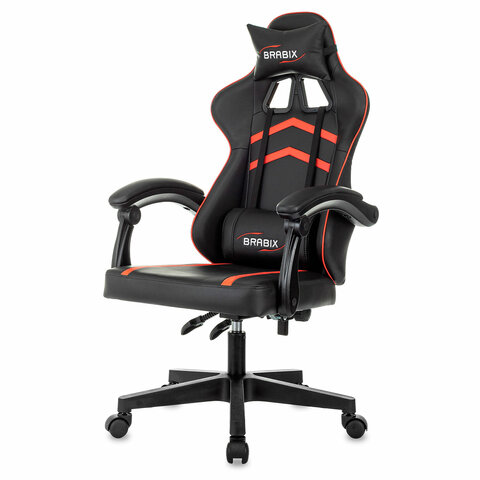 Кресло компьютерное BRABIX "Shooter GM-123", 2 подушки, экокожа, черное/красное, 533190