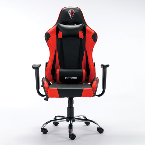 Кресло компьютерное BRABIX "Hunter GM-130", две подушки, экокожа, черное/красное, 532797