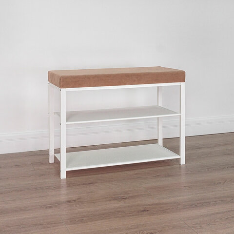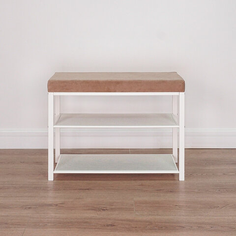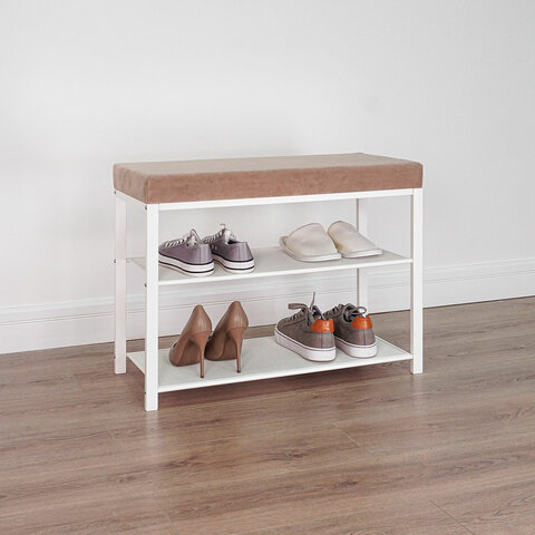 Банкетка для обуви "Торонто-23S", 670х300х490 мм, 2 полки, металл/ткань, белая/бежевая, БТ23СББ