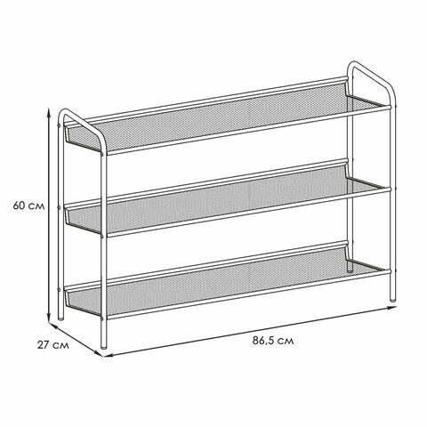 Полка для обуви "Женева-33", 865х270х600 мм, 3 полки, металл, чёрная, ПДО Ж33 Ч