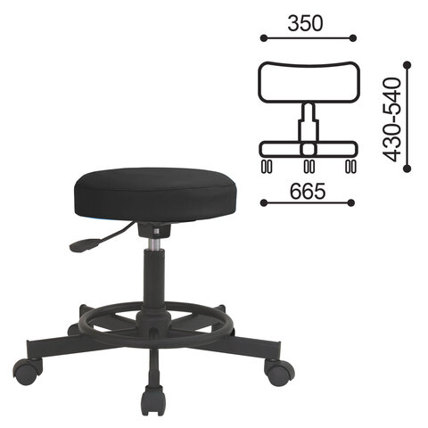 Стул кресло оператора РС12, без спинки, без подлокотников, кожзам, черное, РС01.00.12 б/сп
